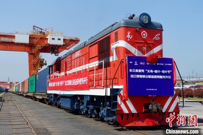 中新社浙江义乌4月11日电 (钱晨菲)一列满载100个标准集装箱出口日用商品的货运班列,11日从位于浙江的铁路义乌西站开出,驶向新疆喀什北口岸,这批货物随后将从该口岸由汽车转运至乌兹别克斯坦首都塔什干,标志着长三角首趟出口货物铁公联运班列(整列)成功开行。