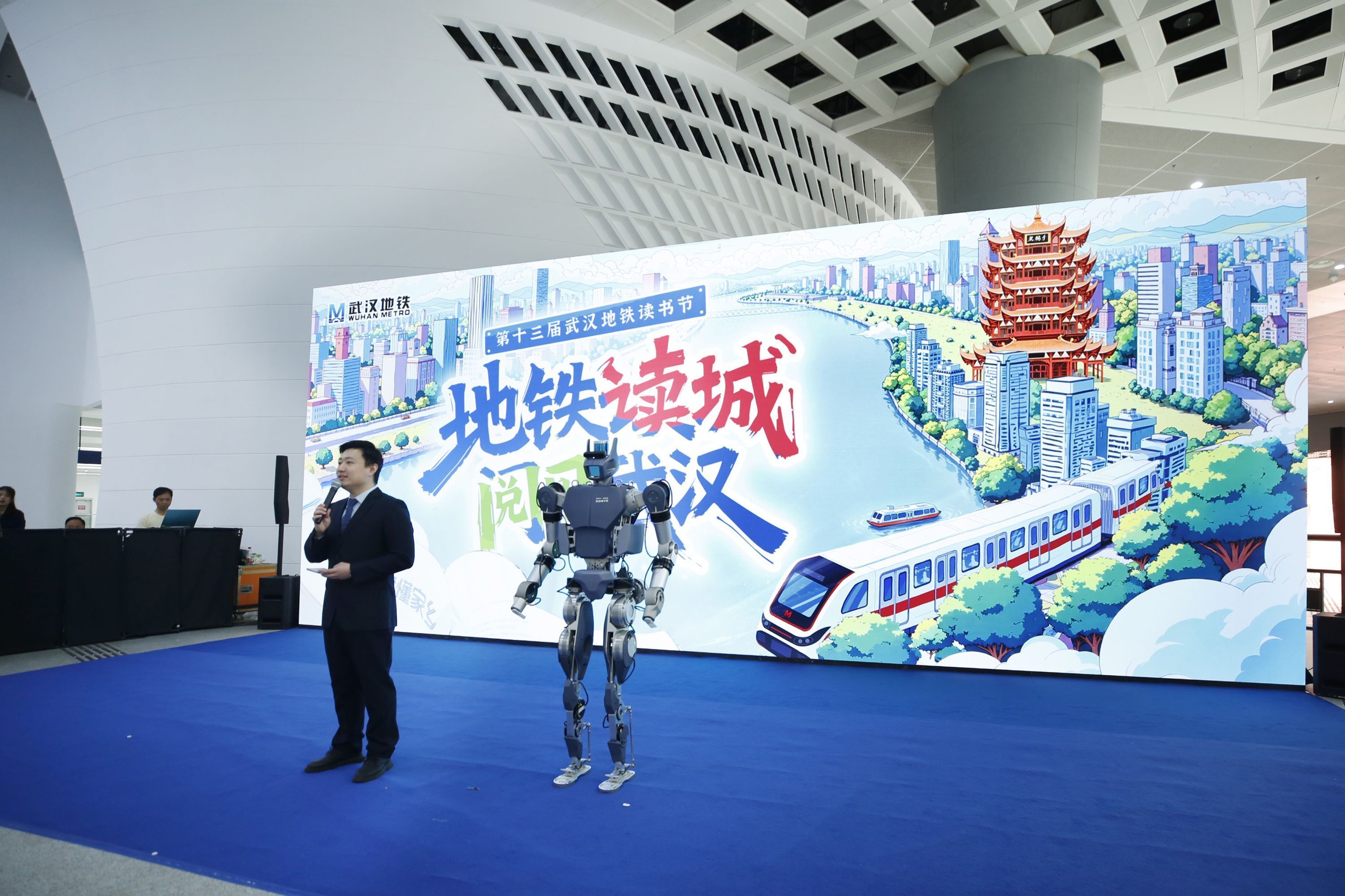 4月10日,第十三届武汉地铁读书节活动在光谷广场环形站厅拉开帷幕,由华中科技大学陈学东院士团队与武汉格蓝若共同研制,拥有出色负载能力的湖北明星机器人“劳动者3号”登上主舞台,担任活动嘉宾主持。