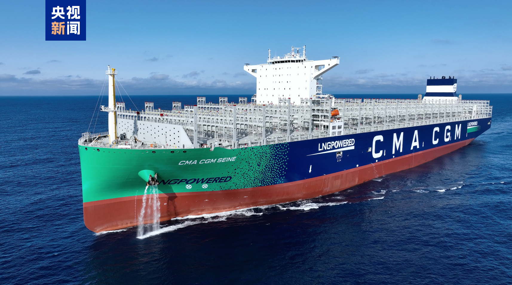 今天交付的全球最大双燃料动力集装箱船一次可承载22万吨货物,24000个左右的集装箱堆叠高度相当于25层楼,被称为海上“超级带货王”。同时,这型船还采用了绿色燃料——液化天然气作为动力,可为船舶提供单个航次近2万海里的超远续航。