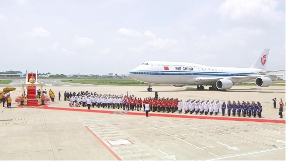 新华社快讯:国家主席习近平出席柬埔寨国王西哈莫尼举行的欢迎仪式。