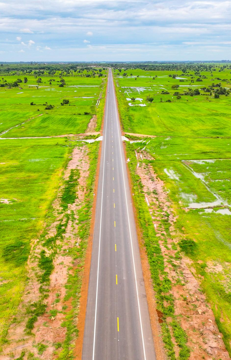 这是2024年7月14日在柬埔寨特本克蒙省拍摄的71C号国家公路(无人机照片)。新华社发(尼多拉摄)