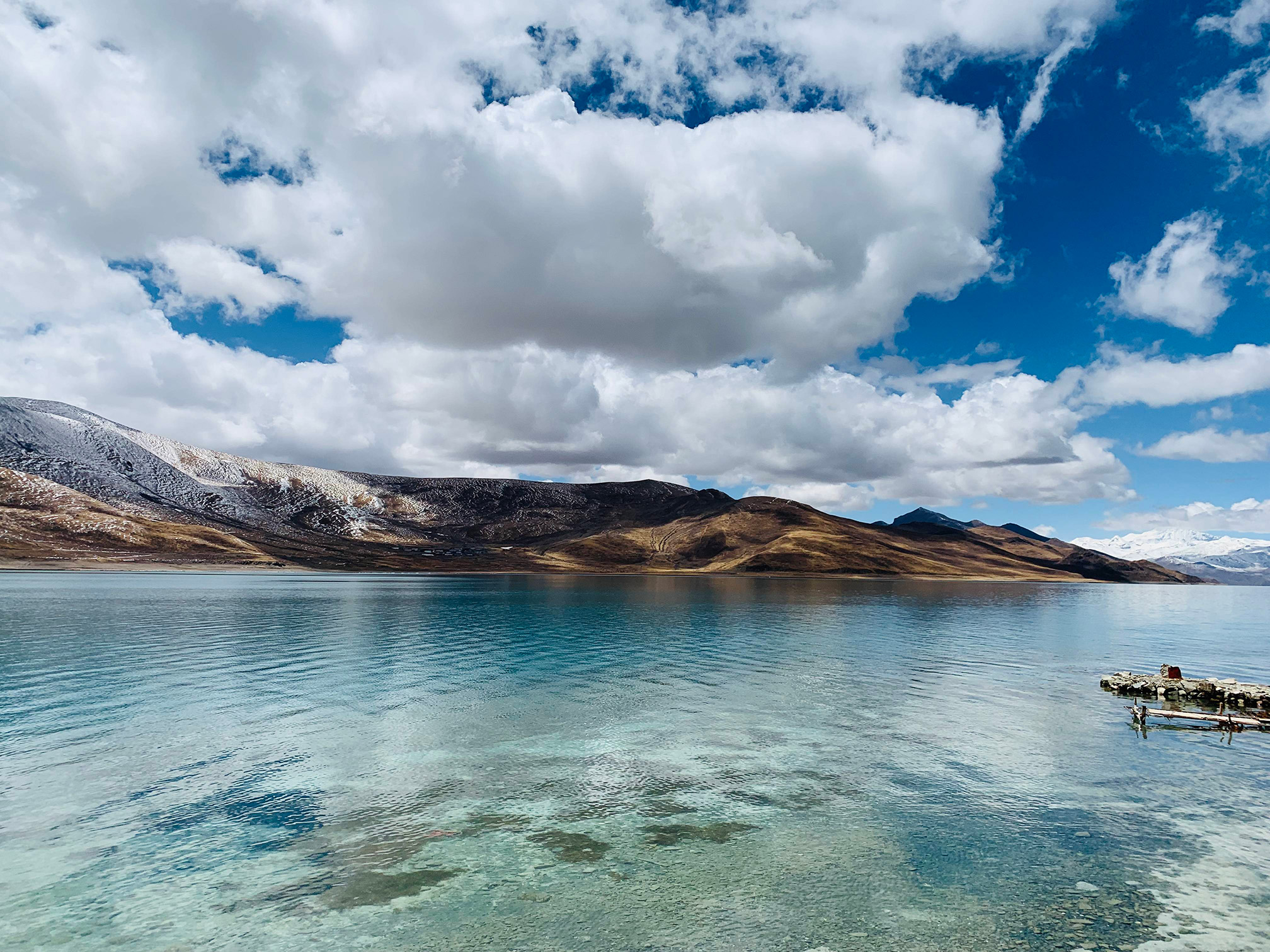 清澈见底的湖水映照着蓝天白云,远处的雪山与连绵的山脉交相辉映,构成了一幅绝美的画卷。湖面平静如镜,仿佛能洗净心灵的尘埃,让人感受到大自然的纯净与安宁。无论是雪山的壮丽,湖水的清澈,都能让人沉浸在这片宁静的天地中,体验到一种超脱世俗的宁静与美好。