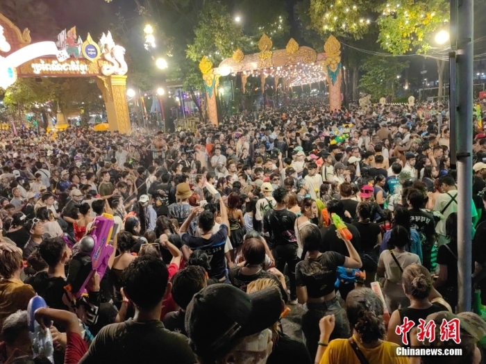 当地时间4月14日晚,柬埔寨首都金边市街头人潮涌动。今年的柬埔寨新年时间为4月14日至16日,该国各大城市推出一系列颇具特色的文旅活动,以期进一步释放节假经济潜力。中新社记者 杨强 摄