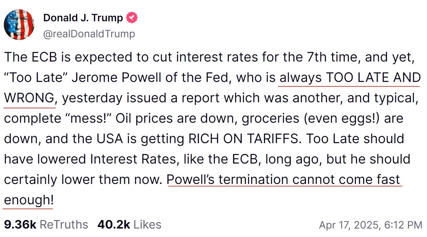 如今,开启第二个总统任期,特朗普继续对鲍威尔开启“催催催”模式。