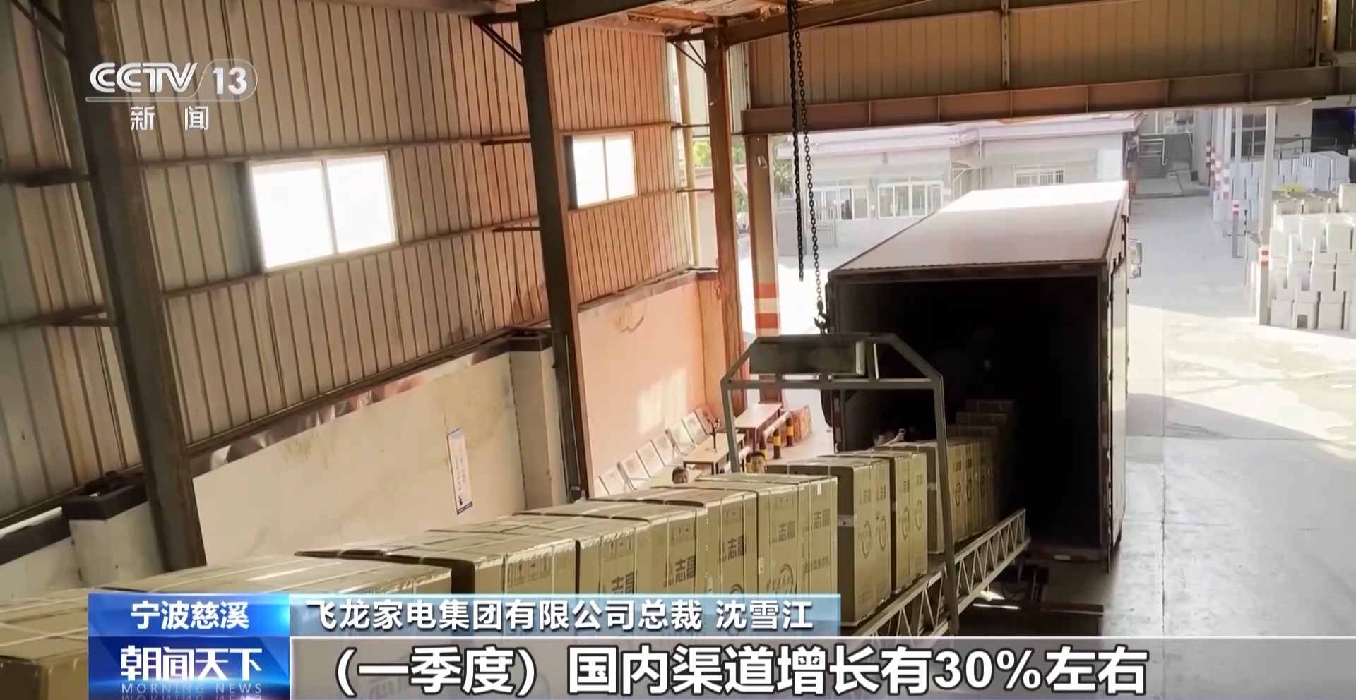 飞龙家电集团有限公司总裁 沈雪江:我们每天都有货发往上海、北京、郑州这些地方。由于国补政策,一季度国内渠道增长有30%左右。