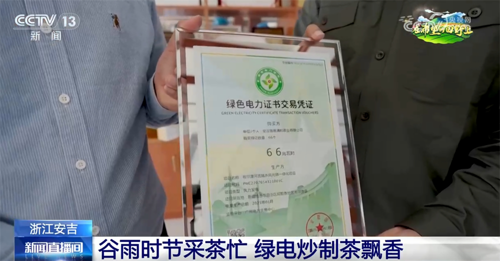 为确保每一片白茶更“绿”,今年,当地多部门联合整合清洁能源,助推茶农茶企购买绿证,促成绿电交易。仅在安吉黄杜村,当地已推动茶农和茶企累计购买绿证达2717张,促成绿电交易272万千瓦时。