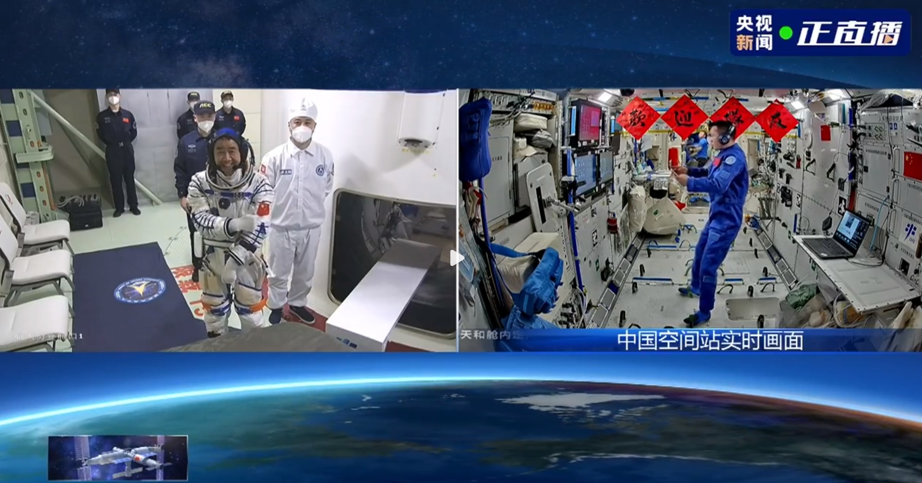 神舟二十号载人飞船任务进行的同时,在距离地球约400公里的中国空间站内,神舟十九号乘组航天员蔡旭哲、宋令东、王浩泽已做好精心准备,迎接队友入驻,在中国空间站已经张贴了“欢迎队友”四个大字。