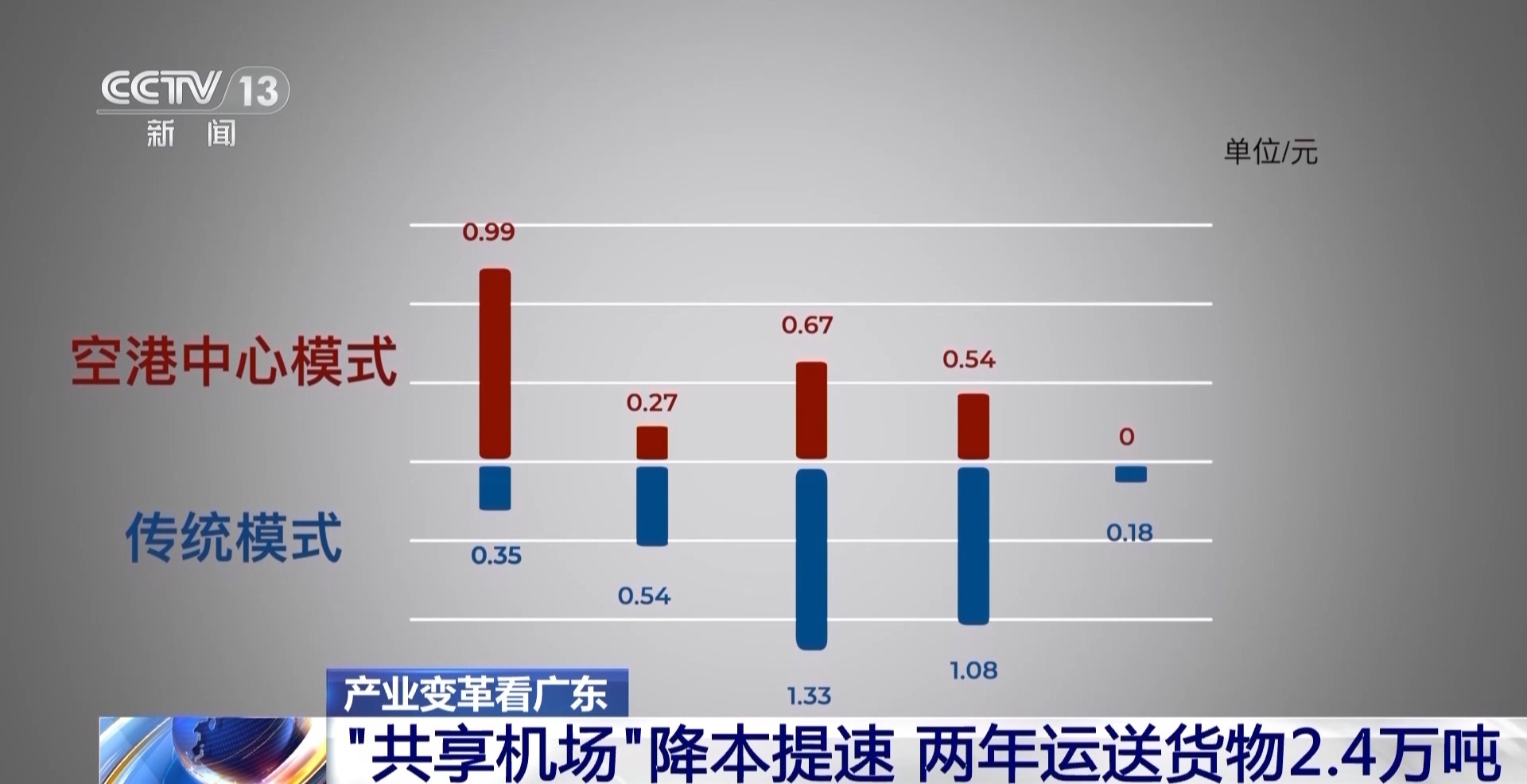 货运代理商给记者算了一笔账,传统模式每千克货物总费用3.47元,空港中心模式只需2.47元,每公斤货物能省1块钱,物流成本降低约30% 。