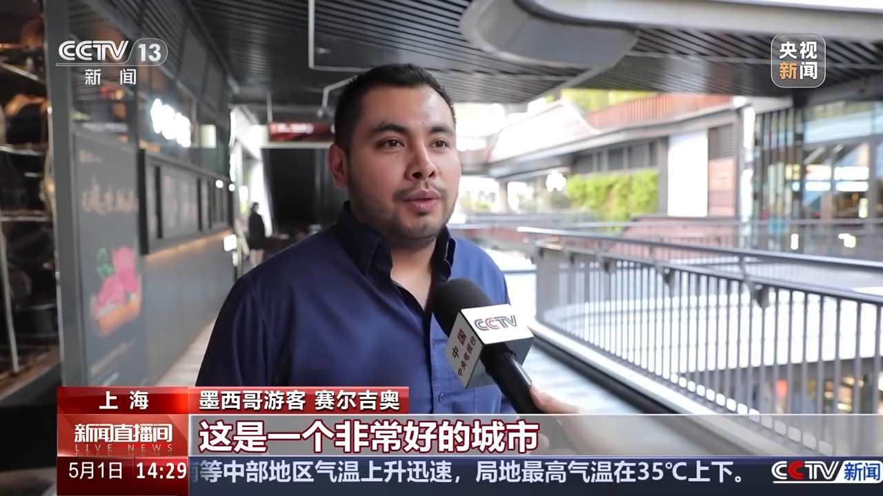 墨西哥游客 赛尔吉奥:事实上在这里你可以找到你想要的每一项技术,你可以找到很多你想象不到的东西,所以我相信,外国人来上海购物真的很好,这是一个非常好的城市。
