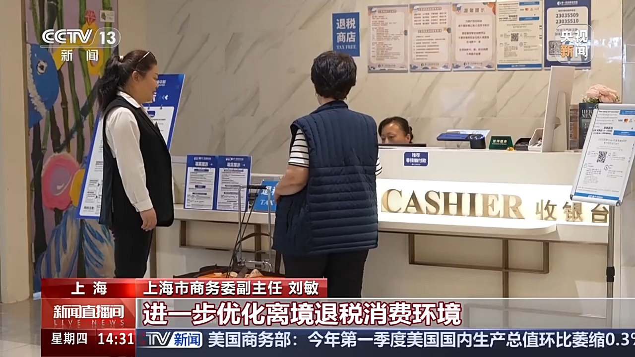 上海市商务委副主任 刘敏:近年来,上海离境退税销售规模始终位于全国前列,去年全市接待入境旅客670.6万人次,同比增长84%,全市退税商店为境外旅客开具了8.6万张退税单,退税商品销售额23.7亿元,同比增长86.6%。今年一季度,上海离境退税销售规模继续保持高增长势头,退税商品销售额达到7.6亿元,同比增长85%。上海市商务委也将会同有关部门进一步优化离境退税消费环境,加快布局离境退税网点,提升商圈离境退税服务便利度,优化“即买即退”服务,让境外旅客能够更加便利在商场购物就能“即买即退”。