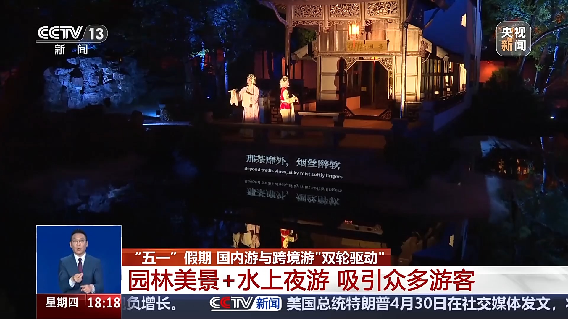 “五一”期间,作为旅游热门城市的苏州也迎来了大客流。在最具江南韵味的苏州老城区,在全息投影等技术支持下,苏州园林夜游、河畔人家水上游等项目受到游客欢迎。