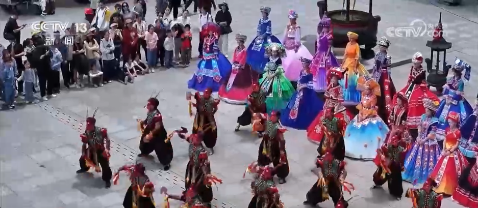 在湖南张家界天门山景区,“五一”假期开展了非遗民俗秀活动。民俗民间艺人们开展非遗巡游,表演了土家舞狮、土家三棒鼓、土家梯玛舞等具有浓郁土家族特色的节目,吸引中外游客驻足观看。