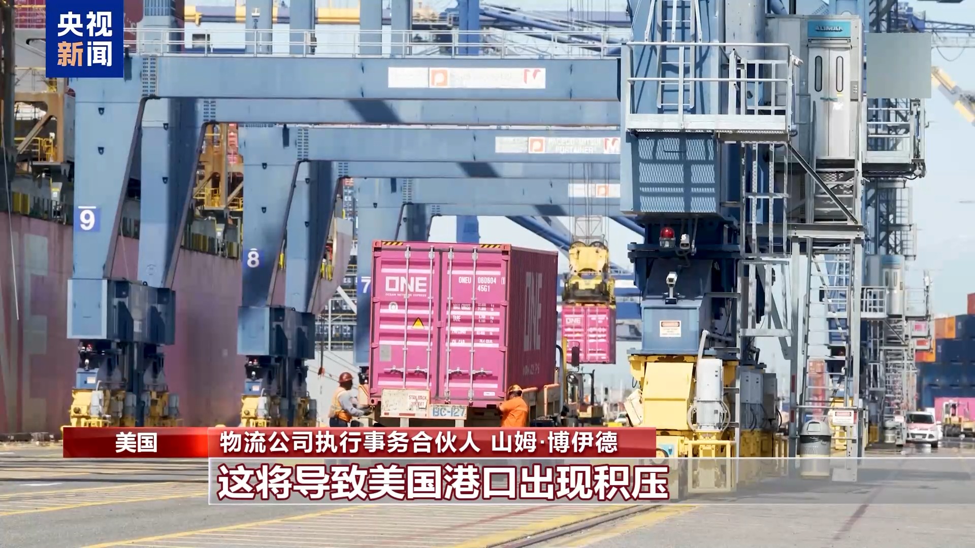 物流公司执行事务合伙人 山姆·博伊德:还有一个更严重的连锁反应。我们现在还没有完全意识到那就是因为太多企业选择暂停发货、观望,这将导致美国港口出现积压或未来的积压问题。假设未来出现一个事件,解决了这些关税问题,各方都满意,可以重新开始下订单。当所有货物同时抵达港口时,这将造成一个激增的局面,也会导致运费的飙升,也会推高美国国内的卡车运输费用。