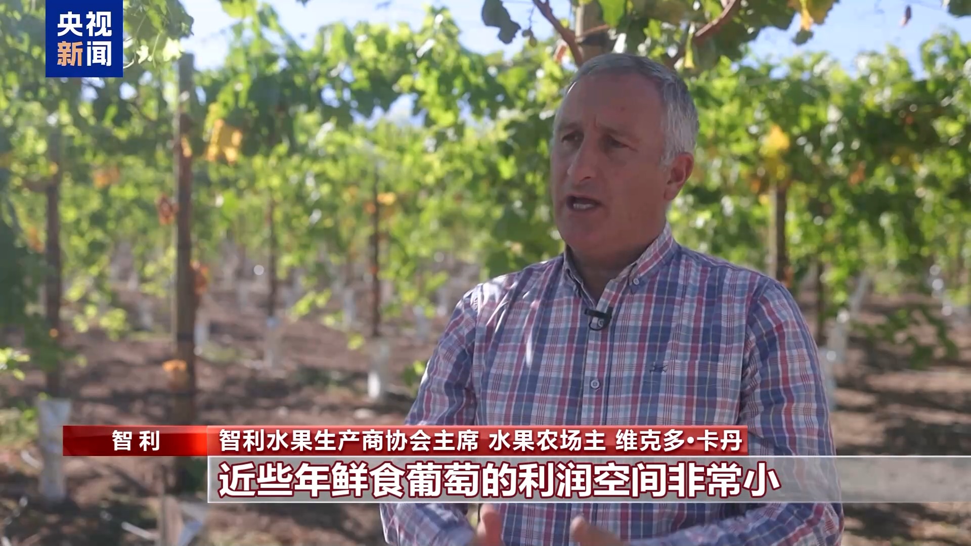 智利水果生产商协会主席 水果农场主 维克多·卡丹:美国加征关税肯定影响我们,近些年鲜食葡萄的利润空间非常小,现在的情况已经触及到利润底线。