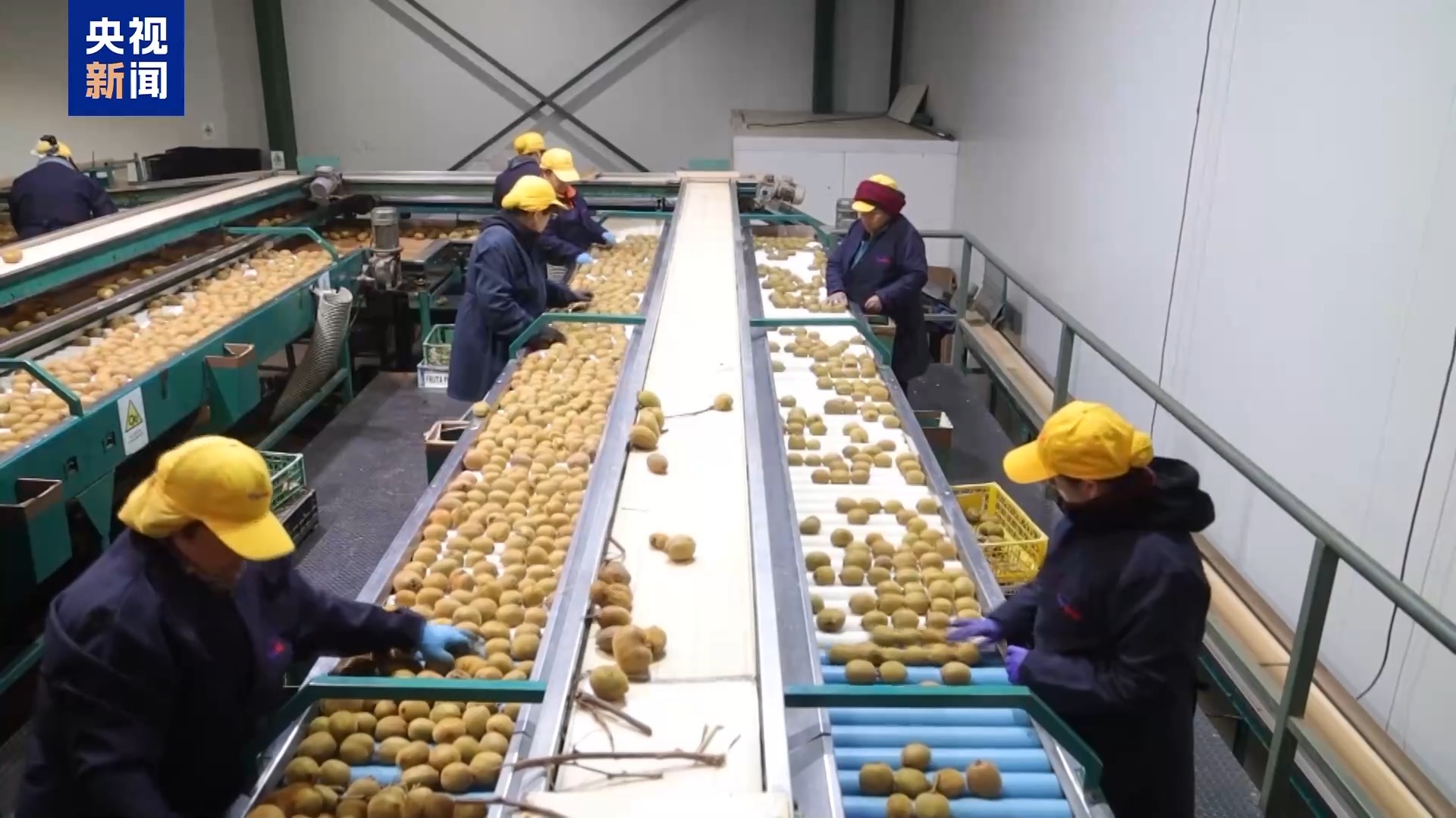 在距离智利首都圣地亚哥2小时车程的一家出口水果加工厂,流水线上近300名员工正在处理奇异果。这批产品将出口至北美、南美等地。