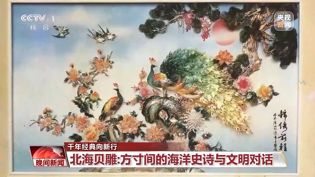 目前,在广西北海,民间有从事贝雕生产的各类大小公司、作坊、工作室约20家,从业艺人上千。眼前这间工作室里,既有“50后”的老手艺人,也有“00后”的新“守艺人”和“创意人”。作品形式既有贝雕画、屏风、摆件等艺术品,也有文具、台灯、首饰盒等实用品。随着传统纹样跃入现代生活场景,贝雕再次走出国门,风靡国际市场。从“海洋记忆载体”到“文明对话者”,这门古老技艺始终在刀尖与贝壳的碰撞中续写新的篇章。