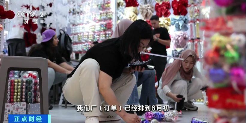 义乌国际商贸城经营户 庄乐平:跟国际行情有关系,今年客人下单比往年早,往年我们大概4月份开始出货,今年2月份、3月份就开始出货,我们厂订单已经排到6月初。