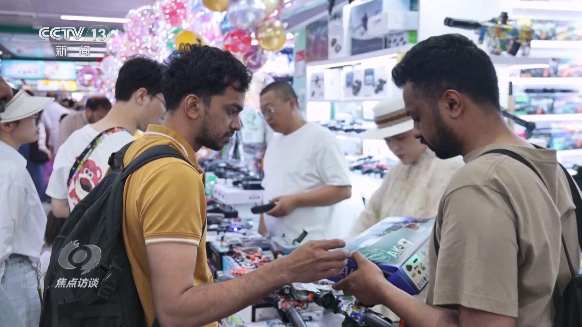 这些洋面孔中,除了定期往返的境外采购商,还有不少是因为我国近期推出的“240小时免签”、离境退税“即买即退”等政策,选择“来华游”和“来华购”的。