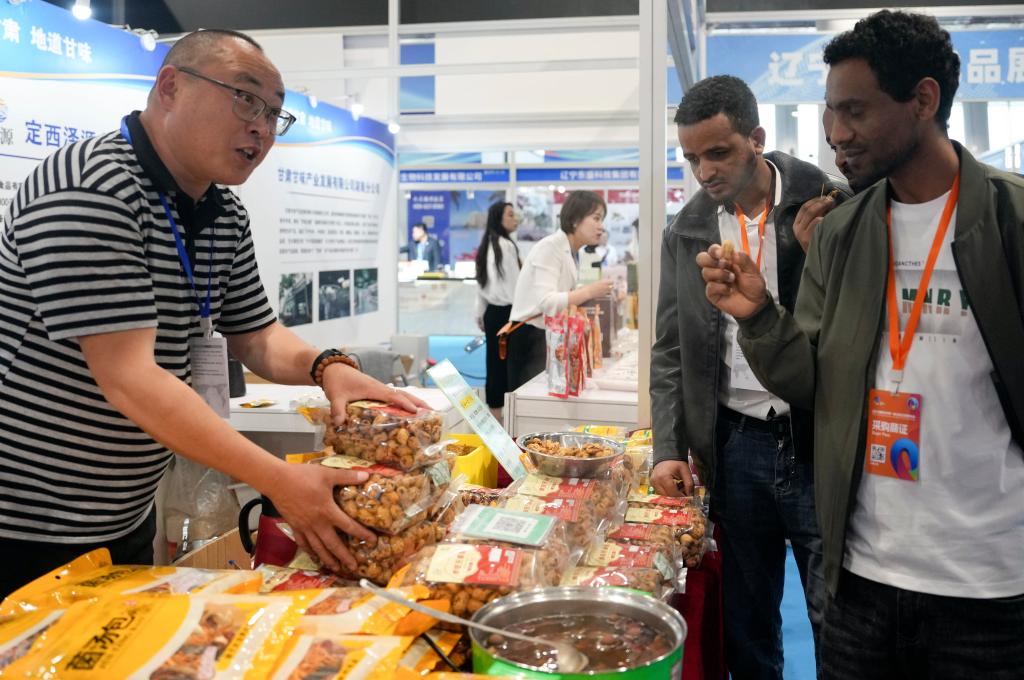 4月27日,参展商(左)在活动现场向采购商介绍商品。当日,“2025湖南内外贸一体化融合发展博览会暨外贸优品中华行湖南站”在湖南株洲国际会展中心正式启动。新华社记者 薛宇舸 摄
