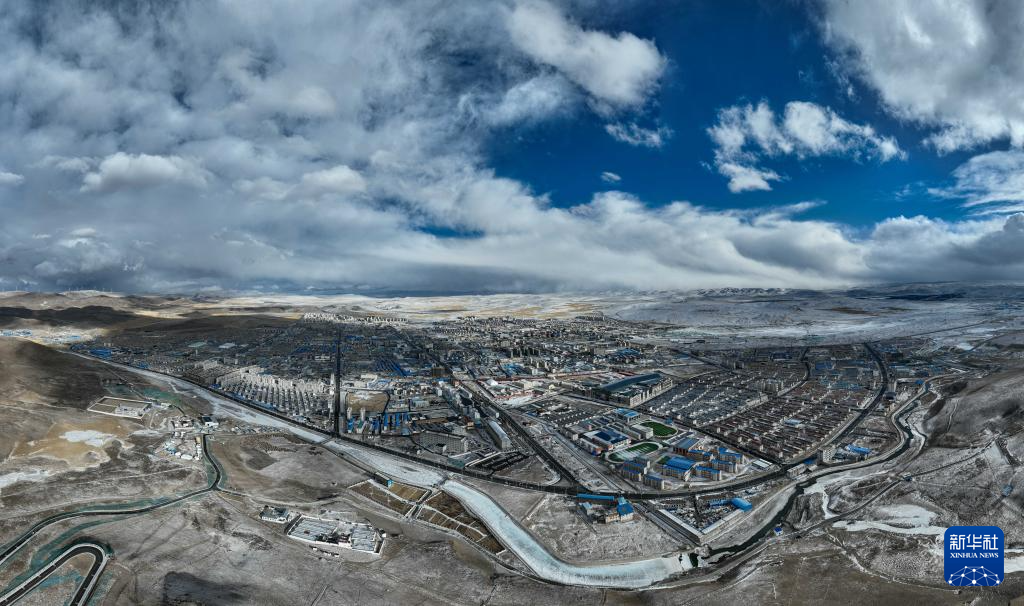 这是2月12日拍摄的那曲城区(无人机照片)。鸟瞰这座“云端之城”,一派苍茫壮阔景象。新华社记者 晋美多吉 摄