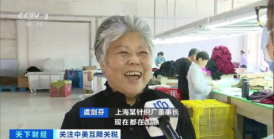 上海某针织厂董事长 虞剑芬:第一反应很高兴,一块大石头落地了,晚上就开始加紧告诉外方单位,赶紧把商标印出来,赶紧把纽扣打出来,现在都在加急。