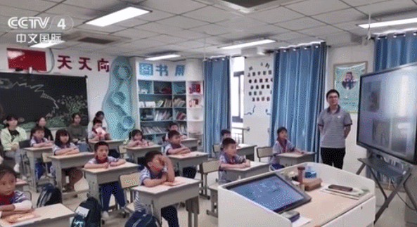 图为在湖南省祁阳市文明铺镇中心小学,师生通过远程课程学习。