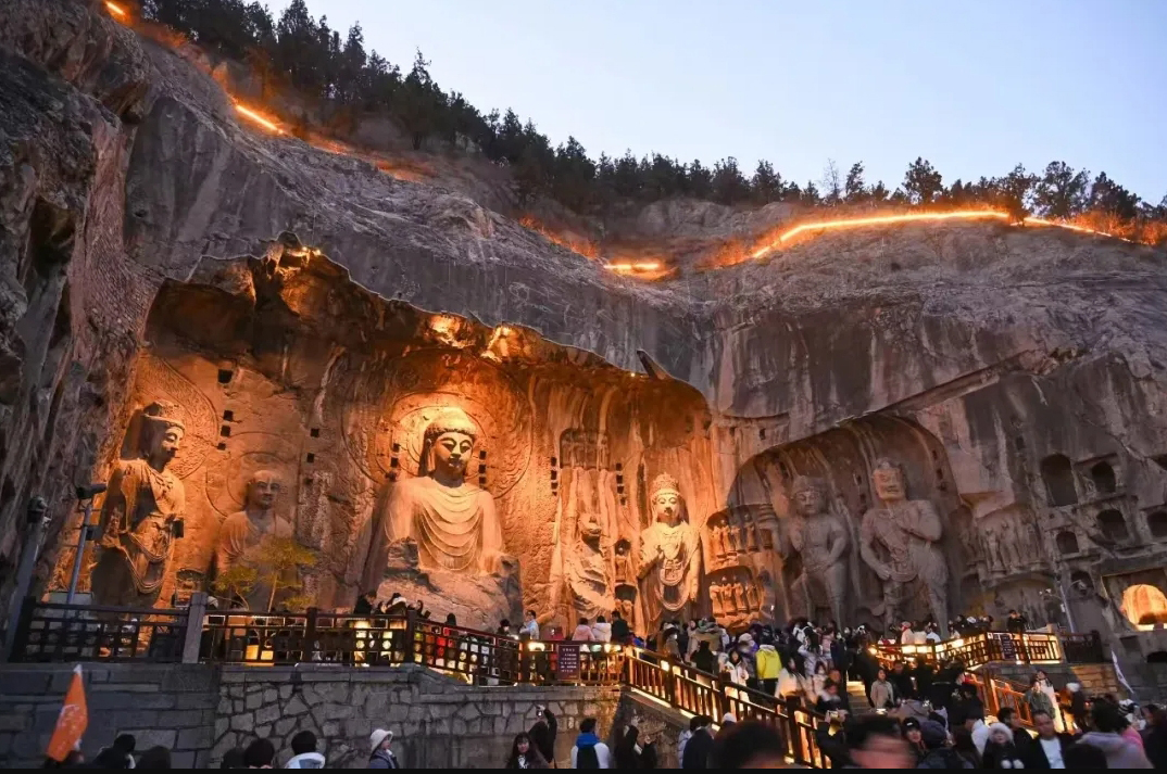 天天学习洛阳城南,伊水汤汤。2345个窟龛、近11万尊石刻造像、2800余块碑刻题记,以峭壁层阿为依托,在夹岸青山镌刻下沧桑的历史印记,这就是洛阳龙门石窟。