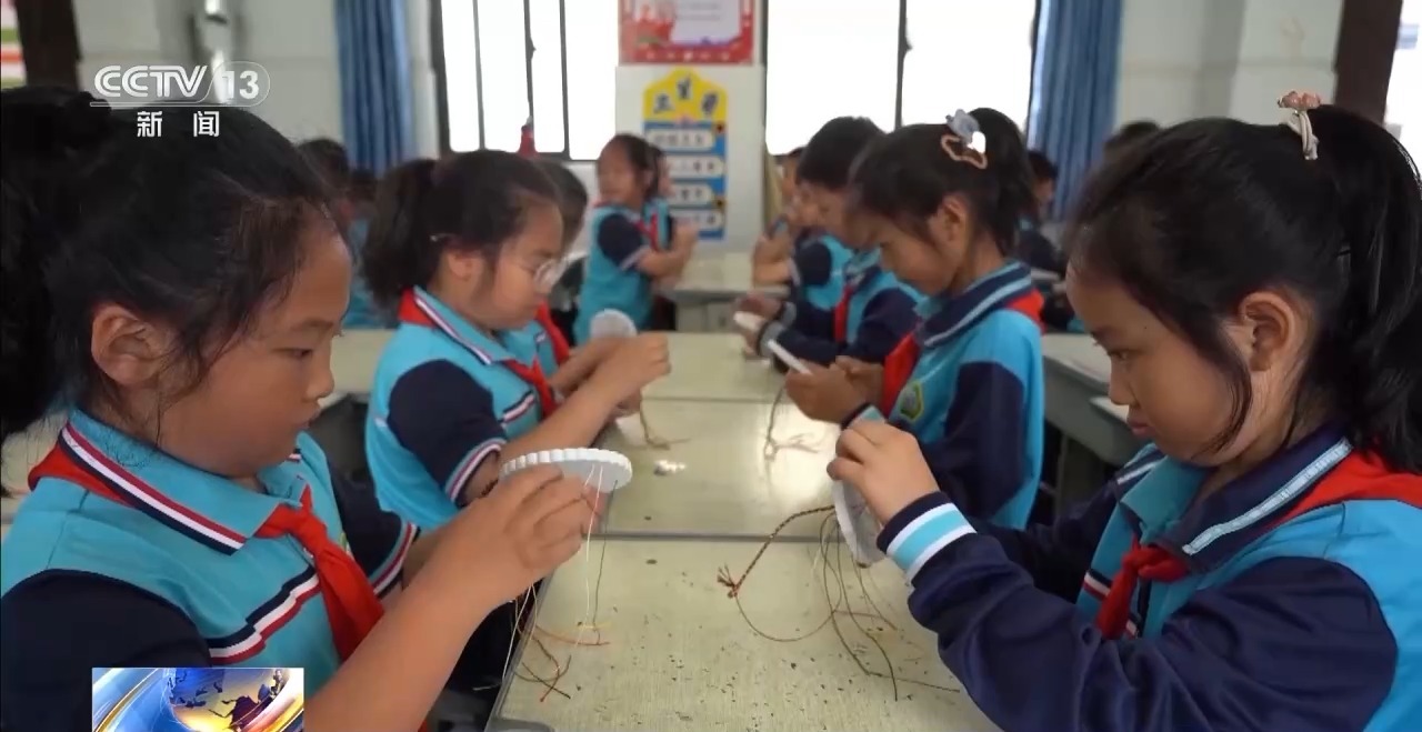 随后,学生们开始编织五彩绳,从穿引固定丝线到反复缠绕打结,有的同学还发挥创意将铃铛、小粽子挂件编入其中,创作出色彩艳丽、寓意吉祥的作品。