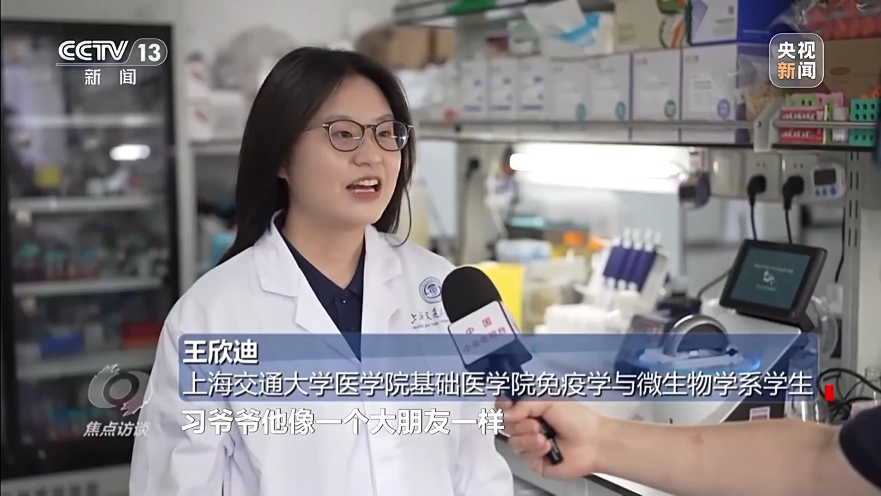 上海交通大学医学院基础医学院免疫学与微生物学系学生 王欣迪:在2013年北京少年宫的那次主题队日上,习爷爷像大朋友一样特别关心我们的生活和学习情况,鼓励我们长大以后做对祖国建设有用的人才,让我感受到了莫大的鼓励和温暖。那些曾经亲切的话语就像温暖的路灯一样,点亮着我前进的方向。我也将继续不断攻坚克难,将个人理想融入国家发展之中,为祖国的基础医学事业贡献出自己的一份力量。