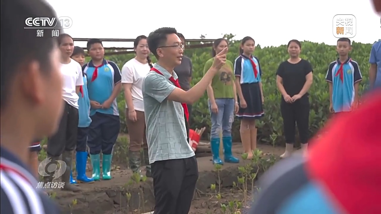 进入新时代,红树林保护和修复进程加速,2016年,黄祖鹏开始担任学校的少先队大队辅导员,为了帮助在海边长大的孩子们更早更系统地了解红树林,宣传发动更多人保护红树林,他与当地多个部门合作,主导开发了学校的创新实践教育活动。通过给每个年级的学生制定不同的目标任务,让“绿水青山就是金山银山”理念在孩子们心中生根发芽。