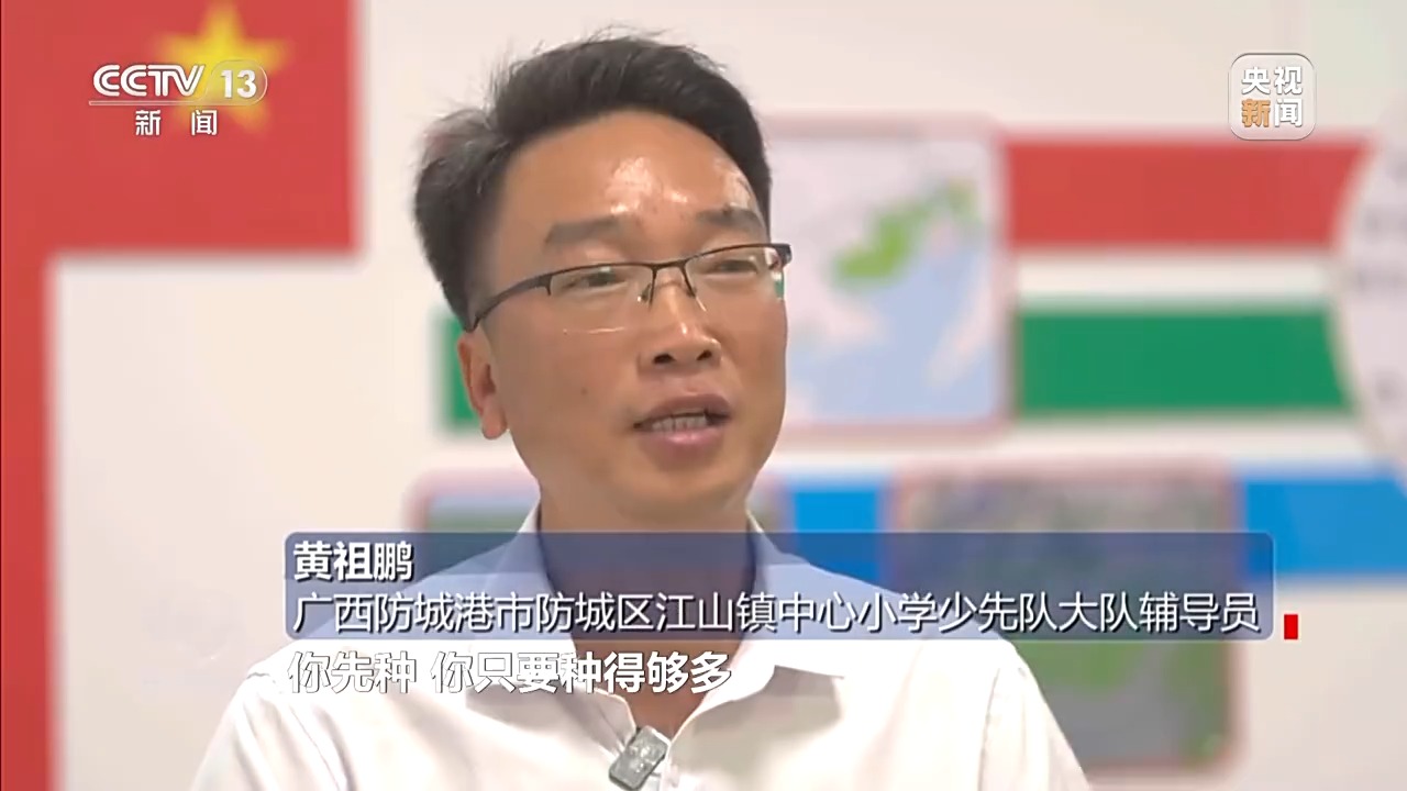 广西防城港市防城区江山镇中心小学少先队大队辅导员 黄祖鹏:我问老校长,做这个活动到底有什么意义?为什么要种这个树?当时他就跟我讲,你先种,你只要种得够多,以后你就会明白种这个树到底有什么意义。