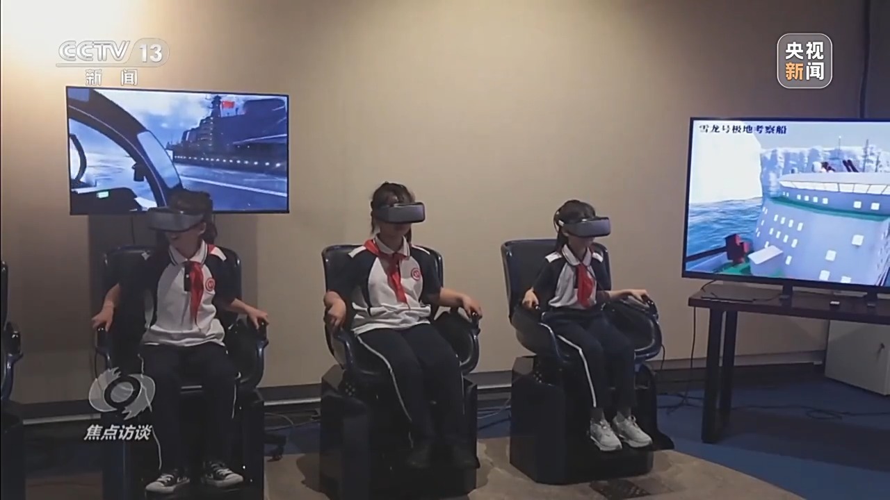 在青岛市崂山区一场名为“我爱祖国海疆”的国防教育主题展上,30多名少先队员在讲解员的带领下,通过展厅内装备的VR体验设备,第一视角感受海军舰载机起飞和着舰过程,上了一堂看得见、摸得着的国防教育课。