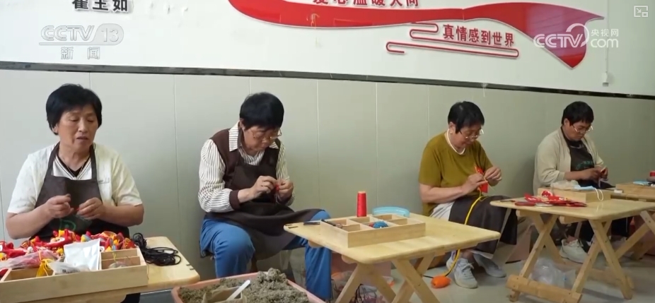 走进生产工作室,工人们正专注地缝制香囊。