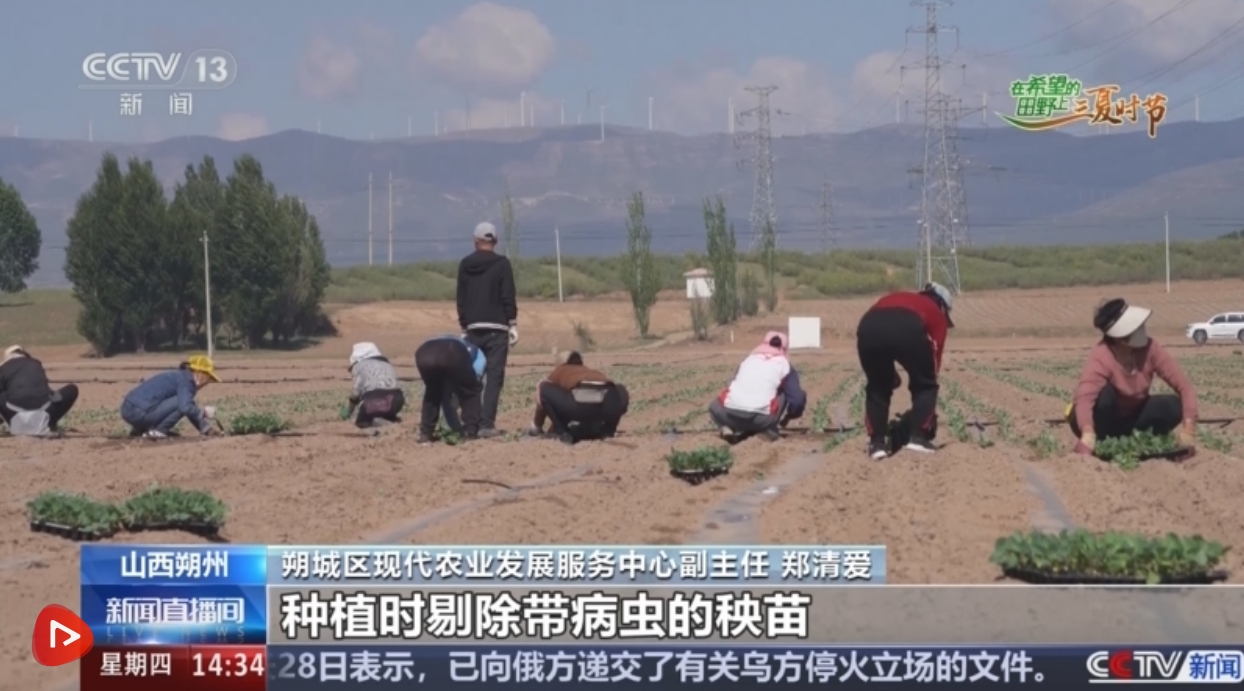 在朔州市朔城区野狐涧村千亩蔬菜种植基地,在农技人员的指导下,菜农们将一颗颗嫩绿的甘蓝苗栽入土壤中,有序地进行秧苗移栽工作。