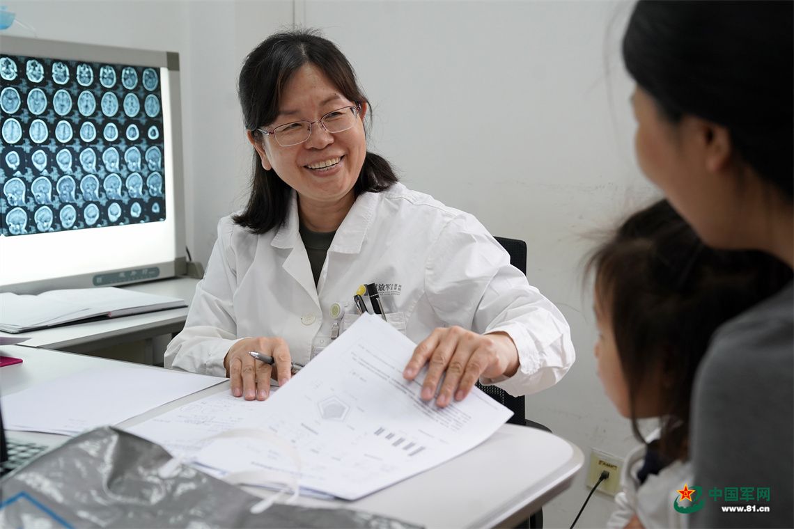 儿童神经内科主任医师王三梅在门诊与患者家属沟通军娃病情。中国军网记者孙悦 摄