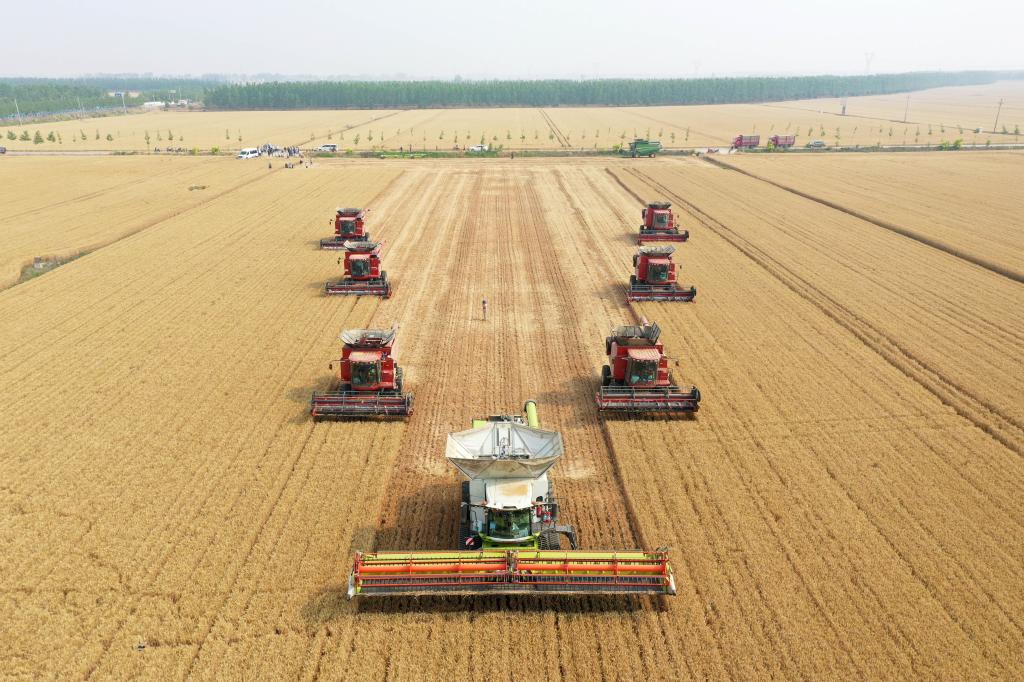 夏收、夏种、夏管是全年农作物种植承上启下的关键阶段。6月上中旬,北方主产区冬小麦进入集中机收阶段。记者在河南、山东、江苏等地看到,收割机开足马力驰骋在麦田中,一排排小麦被整齐地切割、脱粒……广袤农田一片繁忙景象。
