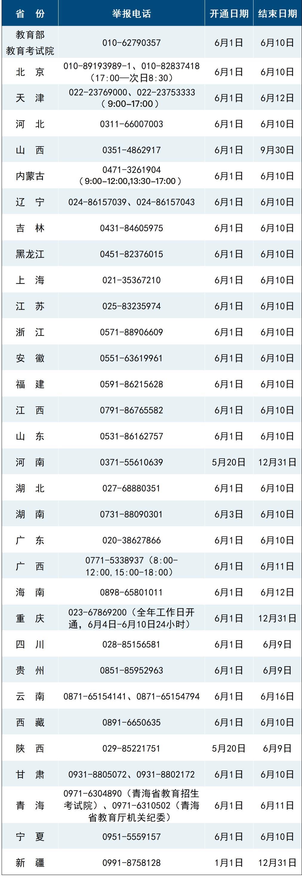 教育部近日公布了2025年高考举报电话