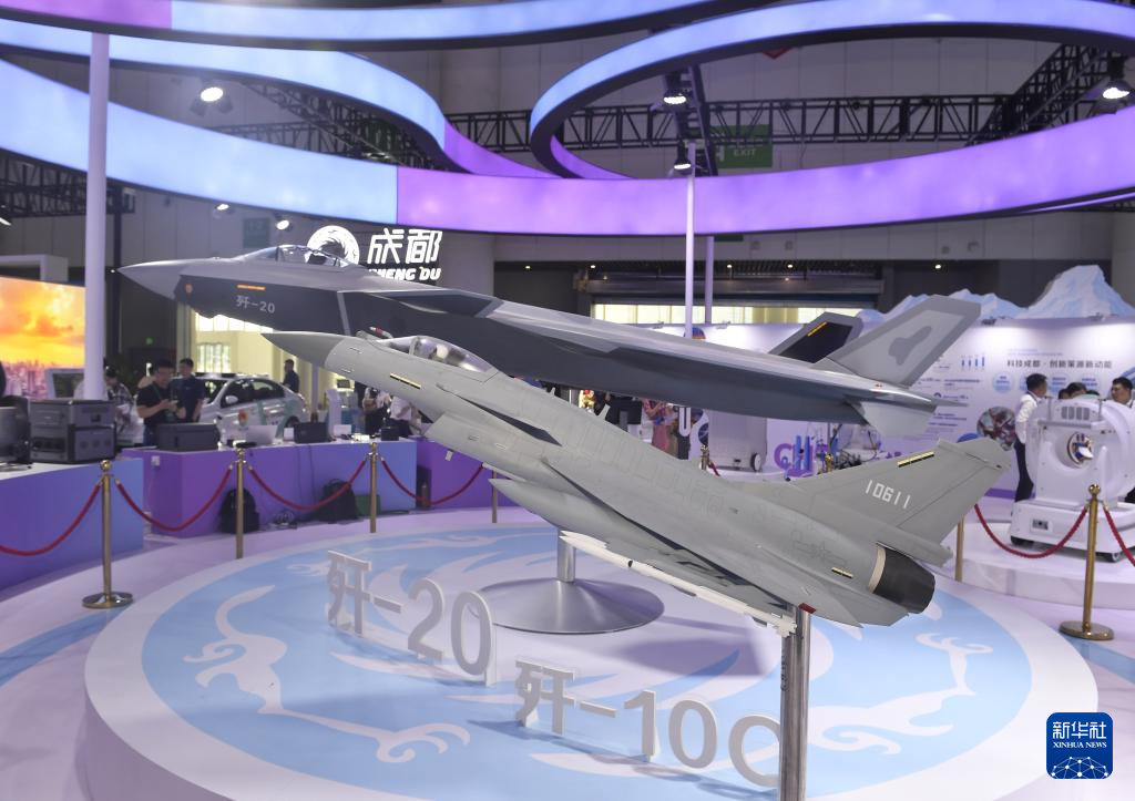 成都馆展出的歼20和歼10C模型(6月11日摄)。