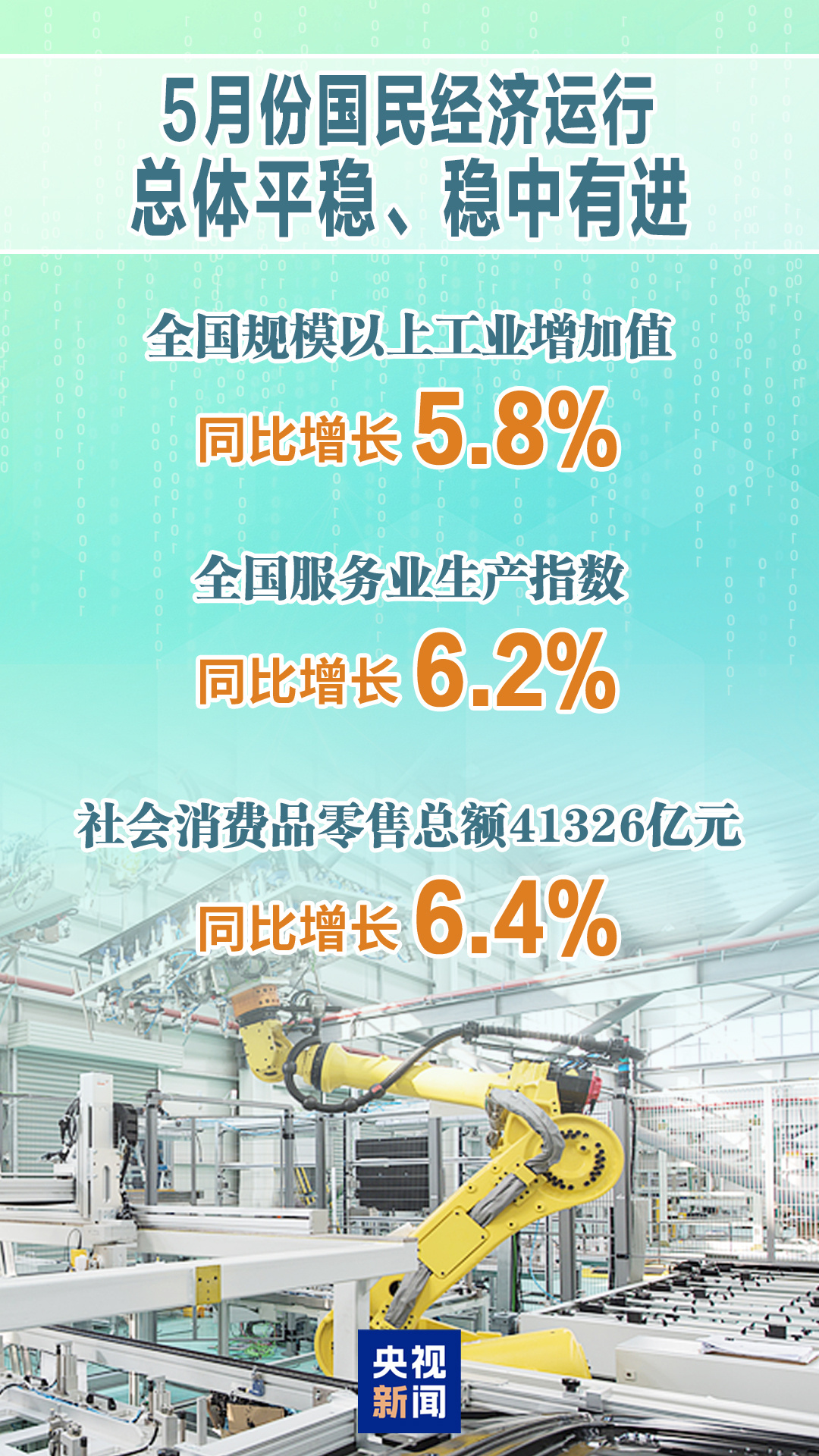 国家统计局:5月份国民经济运行总体平稳 稳中有进