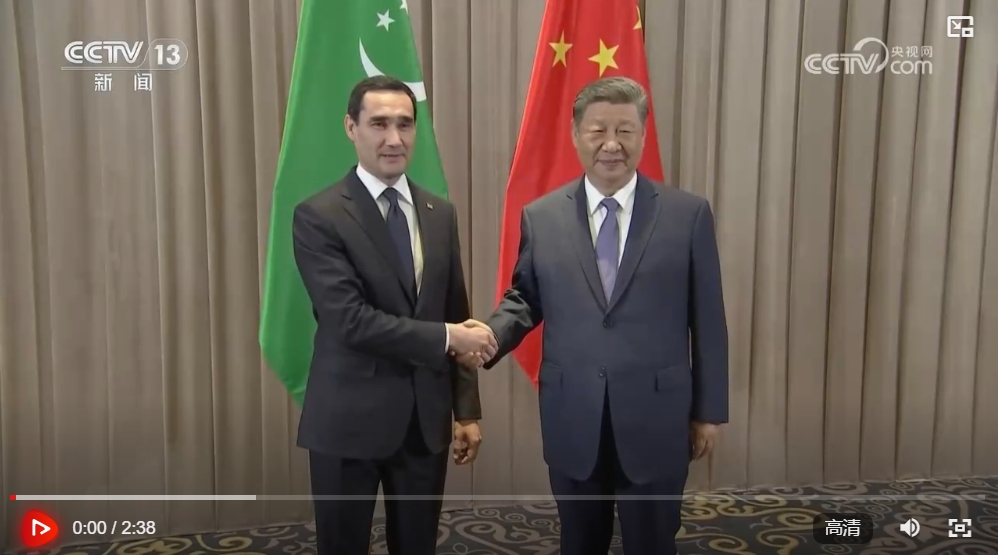 当地时间6月17日上午,国家主席习近平在阿斯塔纳出席第二届中国—中亚峰会期间会见土库曼斯坦总统别尔德穆哈梅多夫。