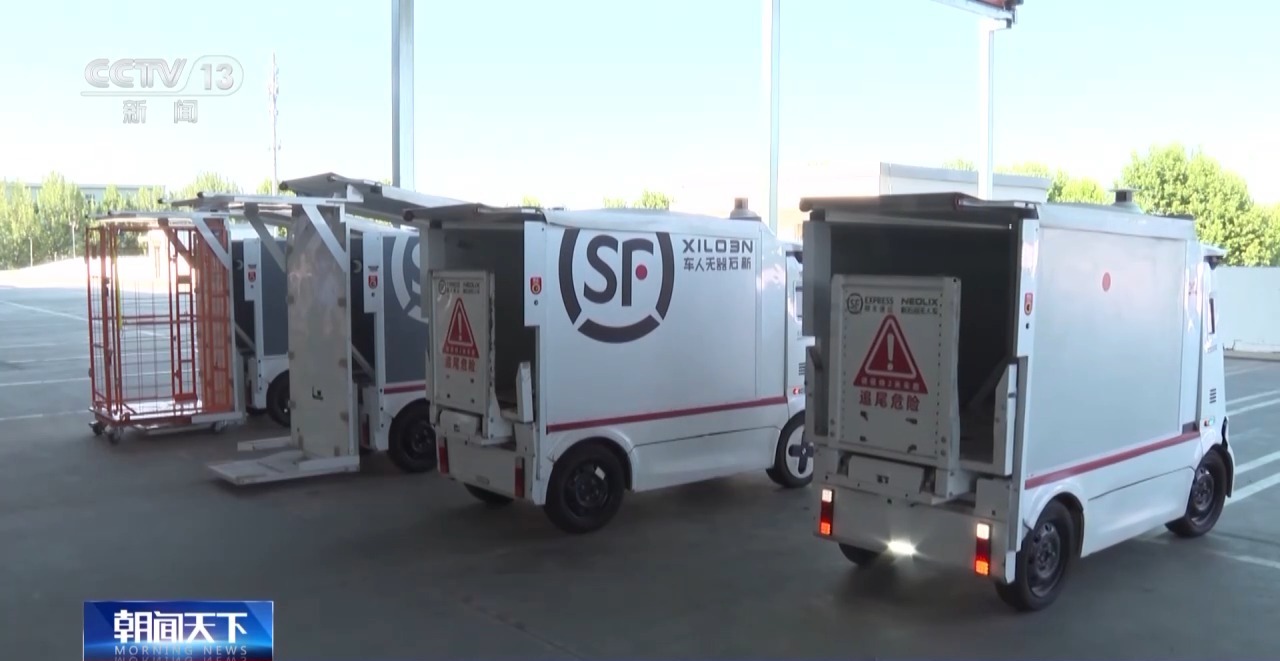 在北京顺义的这个大型物流转运中心,专门开辟了一个无人车基地。30辆不同大小的无人车来回穿梭,自动装货和运行,每辆车每天发运五个班次,配送快递将近两万件,主打就是“短平快”。