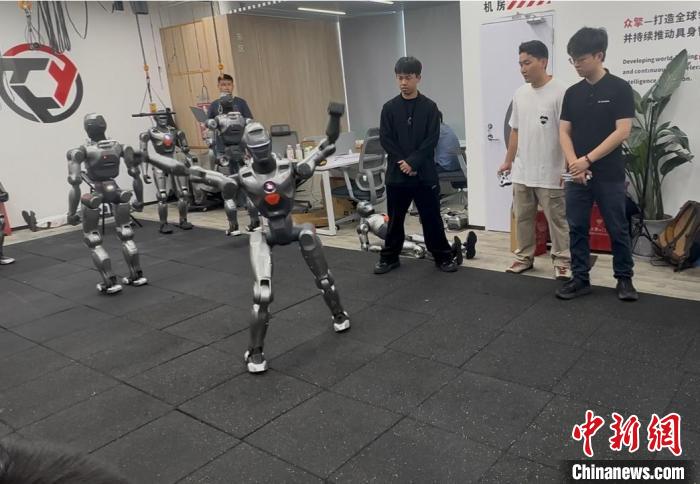 6月25日,深圳市众擎机器人科技有限公司的人形机器人PM01跳起舞蹈。中新社记者 程景伟 摄