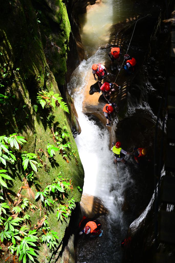 游客在金刀峡景区体验溪降。(秦廷富 摄)