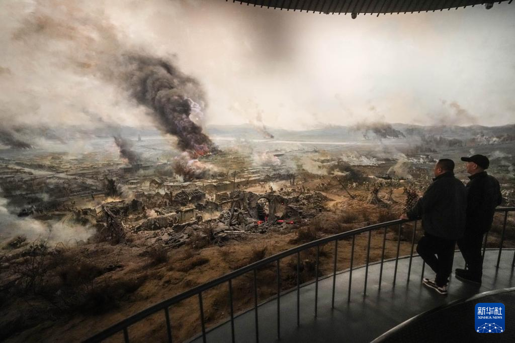 4月1日,参观者在辽沈战役纪念馆内观看全景画《攻克锦州》。 新华社记者潘昱龙 摄
