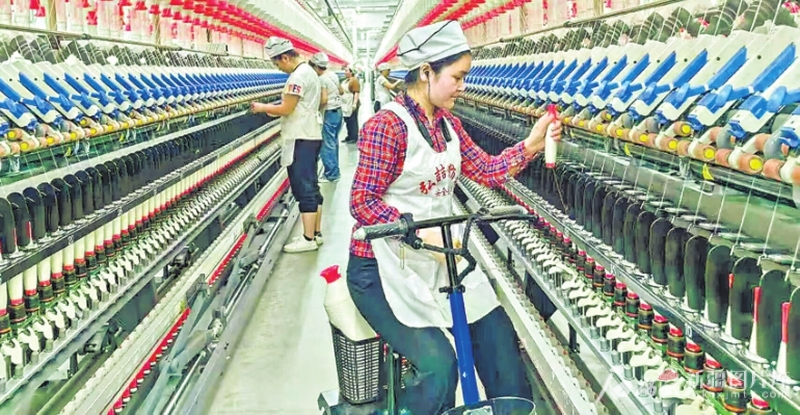 在江苏援疆力量推动下,伊犁州各大产业蓬勃发展。图为一家纺织企业员工正在生产线上工作(2023年8月23日摄)。江苏援伊前方指挥部供图