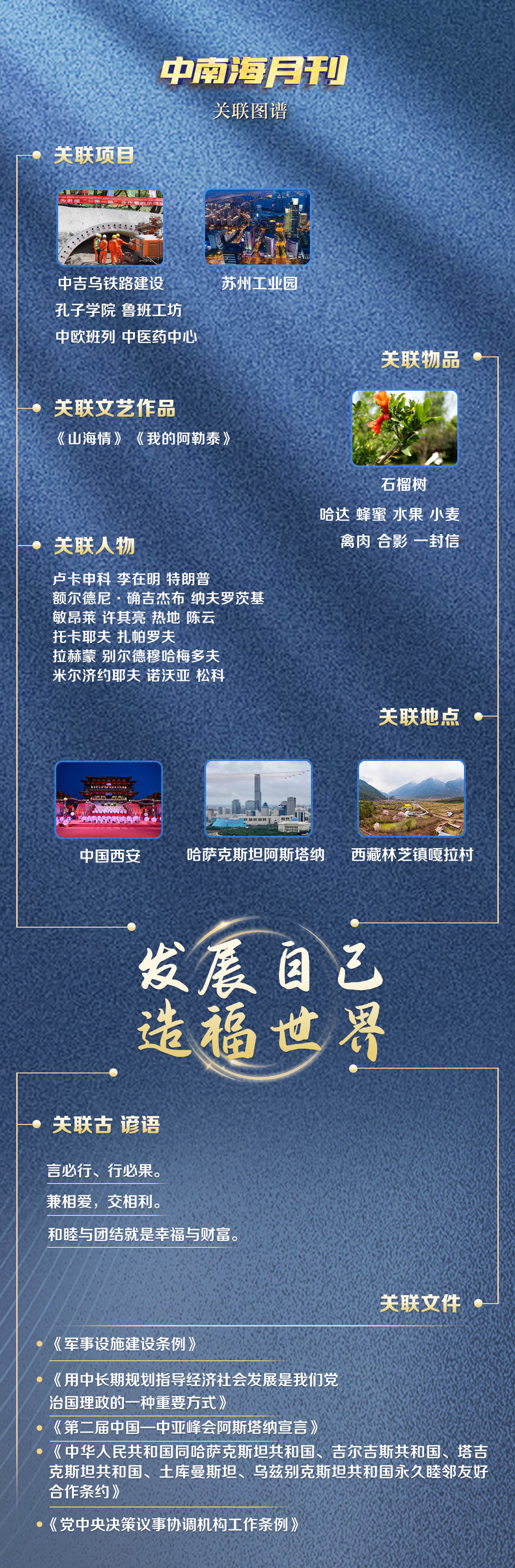 2024年,中国同中亚国家贸易额达6741.5亿元,较2013年翻了一番;中国在中亚国家已建成4个鲁班工坊、5个中医药海外中心,双方友城数量突破100对。截至2024年底,中亚天然气管道已累计向国内输送天然气超5000亿立方米。正在建设中的中吉乌铁路将使吉尔吉斯斯坦第一次拥有通往海洋的道路;途经中亚的中欧班列架起一座座互利共赢的桥梁;从孔子学院、鲁班工坊中,走出一大批从事跨文化交流、掌握新兴工程技术、致力于各自国家发展振兴的友好使者。