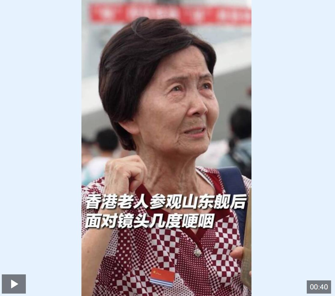 今天(7月5日)是山东舰航母编队访问香港开放参观的第二天。一位香港老人参观山东舰航母编队后,面对镜头几度哽咽:“我们以前都是受人欺负”“看我们中国一天比一天强大,我为我是一个中国人感到很骄傲,现在可以向世界大声说,中国人民军队万岁!”