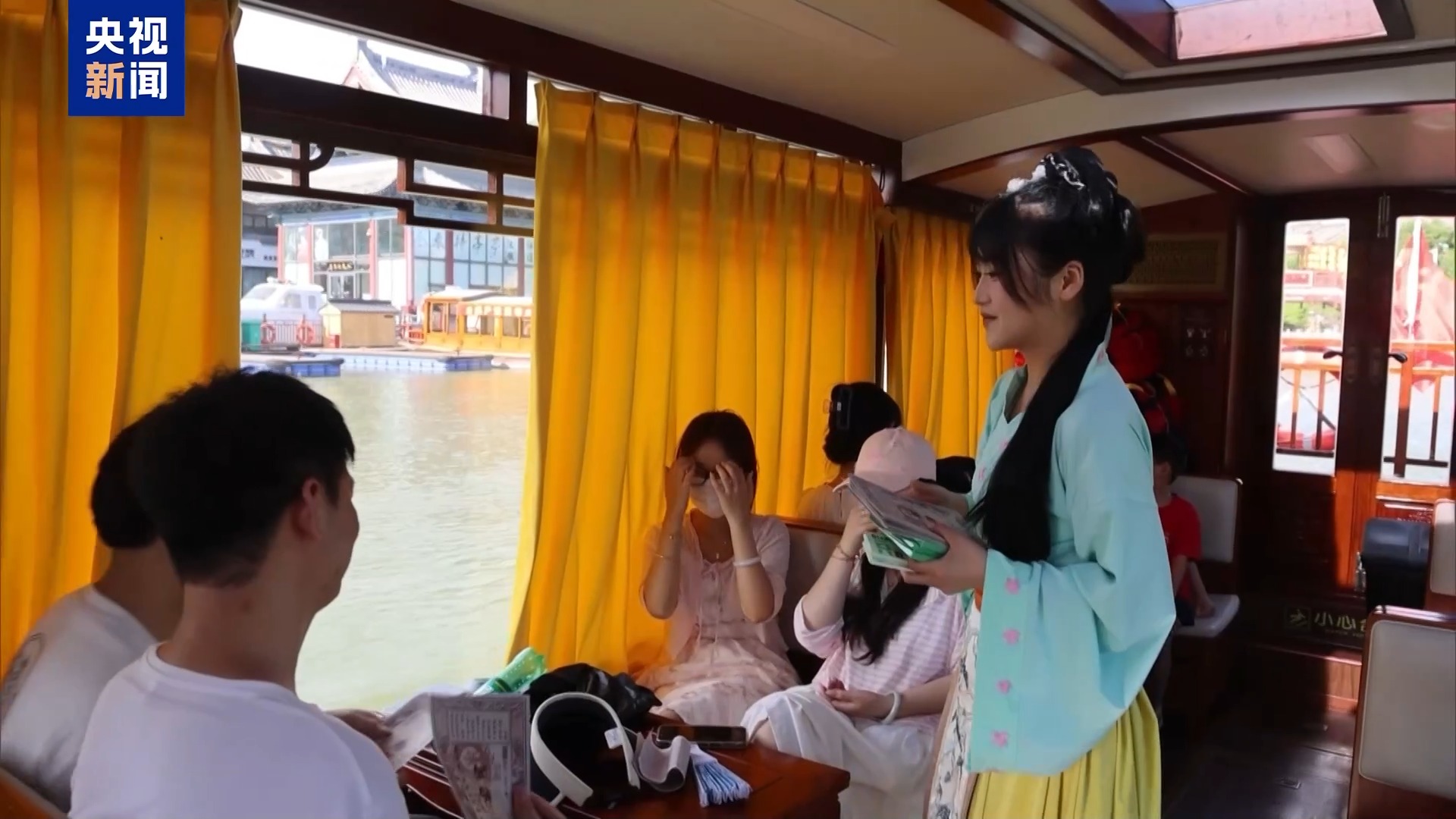 在河南开封,游客能坐船体验“宋朝人的一天”,船上设有互动诗词小游戏,市内的八大景区通过汴河水道“串珠成链”,吸引游客参与其中。