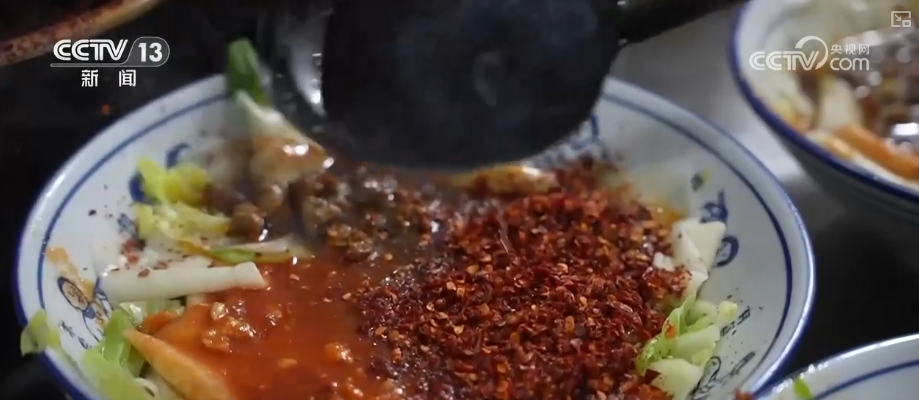 说到面食,绕不过陕西著名的 面。这种面的特点是宽厚筋道,下锅煮熟以后捞出,要撒上葱姜蒜和辣椒面,再泼上一勺热油。