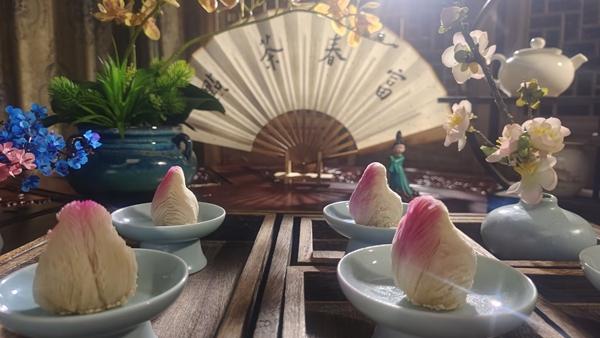 富春茶社点心类创新品种寿桃酥,蕴含健康长寿的寓意。扬州大学供图